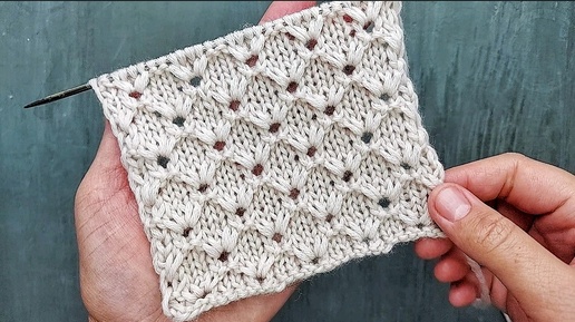 Нежный узор с ромбами из вытянутых петель для вязания женских и детских изделий