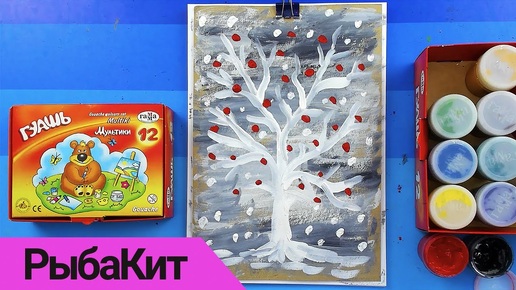 Рисуем ЗИМУ красками гуашь - уроки рисования