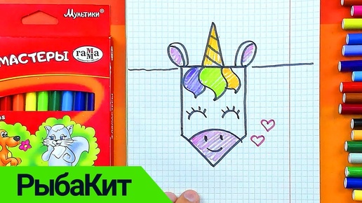 Простые рисунки в тетрадке - рисуем единорога фломестерами
