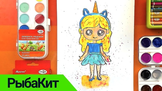 Девочка Единорог - просто рисуем человека - урок рисования РыбаКит