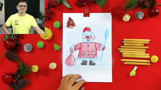 Рисуем Деда Мороза цветными карандашами с РыбаКи