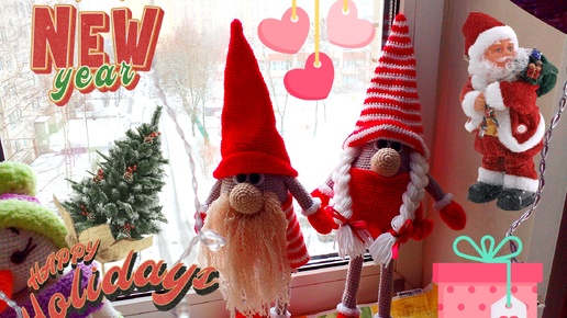 Скандинавские гномы крючком ❤2 ЧАСТЬ семейная пара новогодний интерьер своими руками🎄🎁