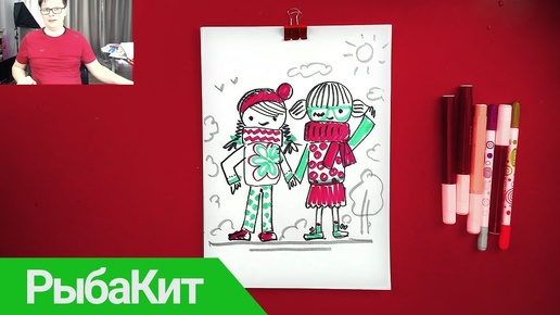 Рисуем скетчи - 2 девочки простые рисунки фломастерами