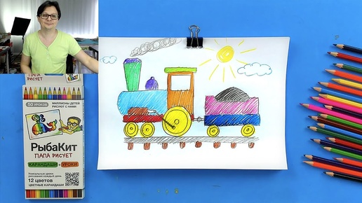 Как нарисовать Поезд Паровоз - уроки рисования карандашами