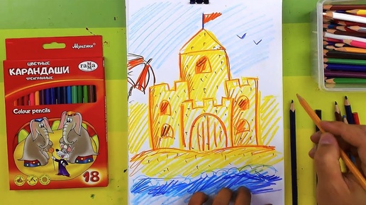 Как нарисовать ПЕСОЧНЫЙ замок цветными карандашами