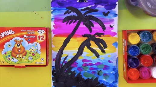 Рисуем Закат на МОРЕ красками ГУАШЬ с РыбаКит