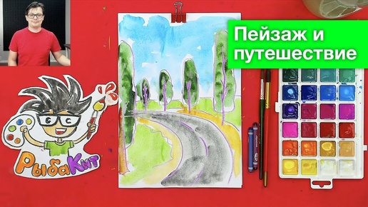 Пейзаж АЛЛЕЯ ДЕРЕВЬЕВ рисуем тополя и дорогу
