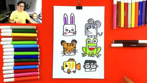 Рисуем ЗВЕРЕЙ из КВАДРАТОВ - уроки рисования фломастерами