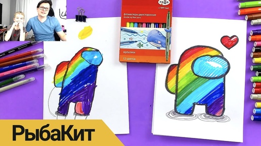 Рисуем АМОНГ АС из радуги фломастерами - просто рисуем Among Us