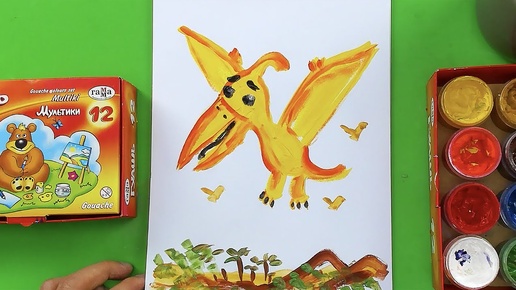 Рисуем ДИНОЗАВРА - Птерозавр - рисуем гуашь для детей