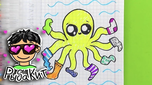 Как нарисовать Осьминога - урок рисования фломестерами от РыбаКит