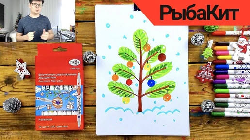 Как нарисовать ЁЛОЧКУ флометерами - урок рисования от РыбаКит