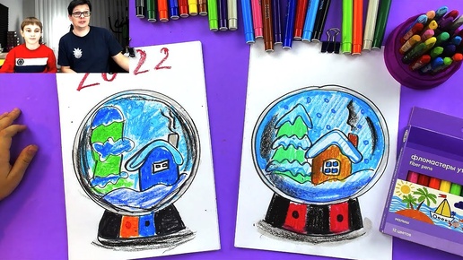 Стеклянный шар рисуем на Рождество с Дамиром - уроки рисования для детей от РыбаКит