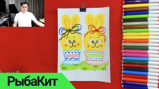 Рисуем Зайчиков на Пасху - учимся рисовать с РыбаКит