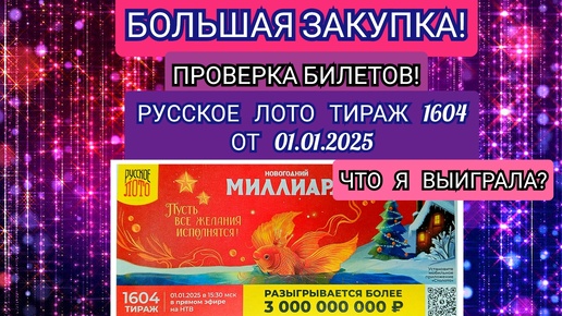 БОЛЬШАЯ ЗАКУПКА! РУССКОЕ ЛОТО ТИРАЖ 1604 ОТ 1 ЯНВАРЯ, ПРОВЕРКА БИЛЕТОВ. ЧТО Я ВЫИГРАЛА?