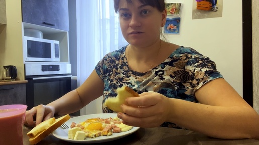 Завтрак дома/ Мукбанг/ дома тихий час а нам бы поесть/ Яйца с колбасой/ кофе/
