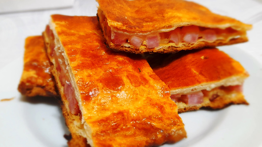 Простой, быстрый в приготовлении и очень вкусный пирог с начинкой из сыра и ветчины обязательно понравится вам и вашим родным.