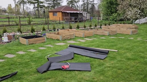 Обивка высоких грядок из дерева укрывным материалом