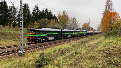 Тепловозы 2ТЭ116-1688 • 2ТЭ116У-0187 с грузовым поездом.