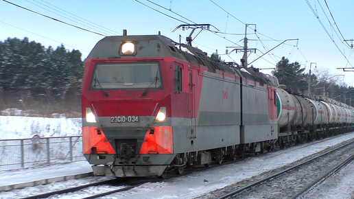 2ЭС10-034 "Гранит" с грузовым поездом следует через о.п. Вершина