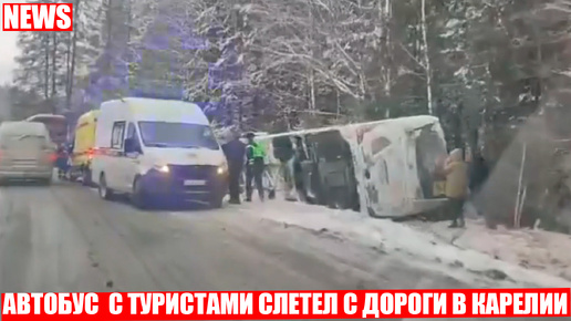 Туристический автобус слетел с дороги и перевернулся в Карелии