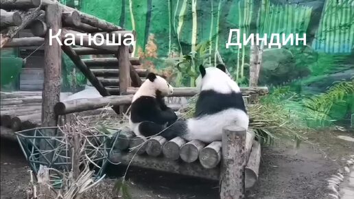 Панды Московского зоопарка: Катюша и Диндин - ладушки, Жуи жуёт и (осторожно) 🙈 кака... 💩