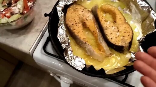 Форель в фольге, на луковой подушке.