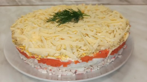 Салат слоёный с крабовыми палочками и сыром
