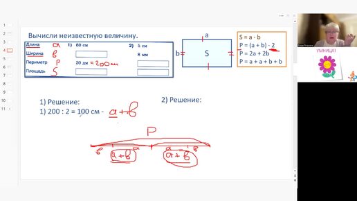 Далее: Математика 4 - 5 класс. Решение задачи на нахождение периметра прямоугольника.