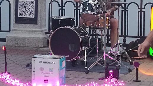 Благовещенск напротив Китая. Музыкант на барабанах исполняет песню Я это Ты