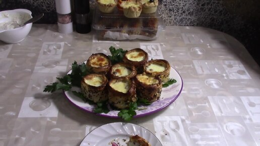 Новогодний жульен в корзиночках из слоеного теста