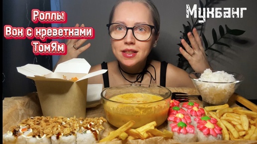 Мукбанг/РОЛЛЫ, ВОК Удон с креветками в сливочном соусе, ТомЯм 🫕(сама готовила)/Мои рекомендации❤️Я это сделала💃