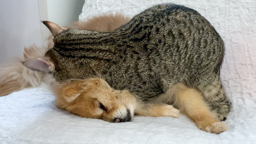 Никто не верит, что спасённая кошка может так нежно играть с собакой