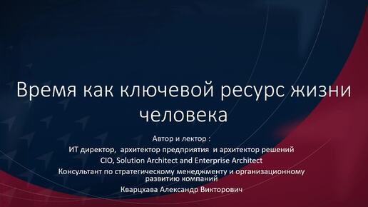 Время как ключевой ресурс жизни человека