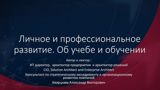 Личное и профессиональное развитие. Об учёбе и обучении
