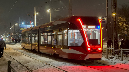 Трамвай "Витязь-М" (71-931М) №8934 в парк на Петергофском шоссе, декабрь 2024 года