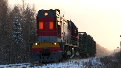 ТЭМ7А-0124 со сборным поездом и приветливой бригадой