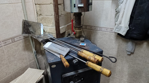 Самодельный набор для печки. Кочерга, совок и зольник из нержавейки.