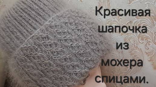 Красивая шапочка из мохера. Вяжем тёплую шапку спицами.