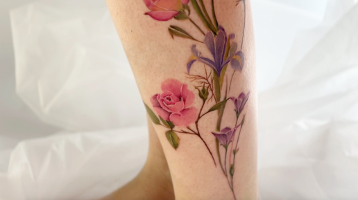 Тату на ноге и бедре для девушки - цветы. Красивые и стильные татуировки от мастера @kottattoostudio