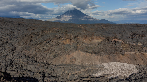 Полет над лавовыми полями трещинного извержения 2012-2013 гг. вулкана Толбачик