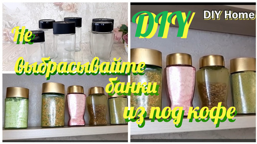 Собрала банки из под кофе. Получились цветные емкости для сыпучих.