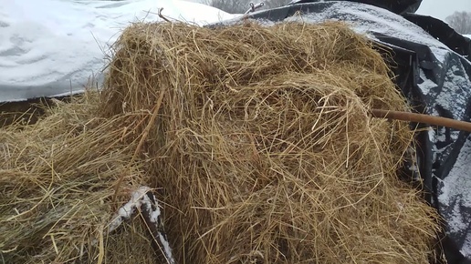Кормлю прошлогодним сеном.
