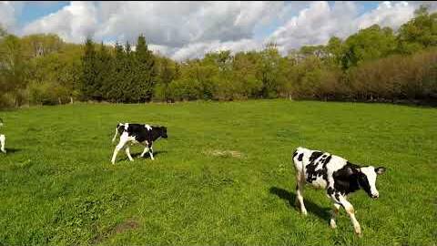 Новые бычки впервые на пастбище.