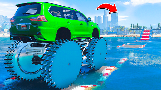 ПРОЕХАЛ ВОДНЫЕ КОЧКИ на ГИГАНТСКОМ ЛЕКСУСЕ на ПИЛАХ в ГТА 5 МОДЫ - ЭКСПЕРИМЕНТЫ в GTA 5 MODS
