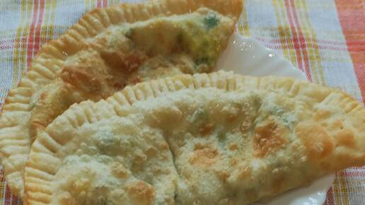 Чебуреки с зелёным луком, яйцом и сыром.