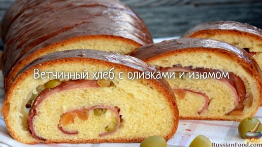 Сочетание сладкого и солёного оригинально и вкусно. Ветчинный хлеб с оливками и изюмом
