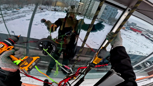 Установка створки в глухое окно Schuco. Работает ПРОМАЛЬП.