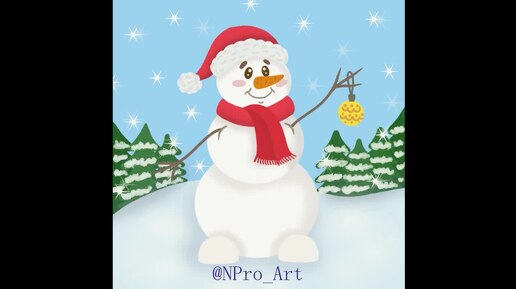 Как нарисовать снеговика в программе Procreate/ Новогодние рисунки/ видео урок для срисовки