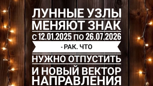 🔥ЛУННЫЕ УЗЛЫ МЕНЯЮТ ЗНАК с 12.01.2025 по 26.07.2026 - Рак. Что нужно ОТПУСТИТЬ и новый вектор НАПРАВЛЕНИЯ вашего пути.